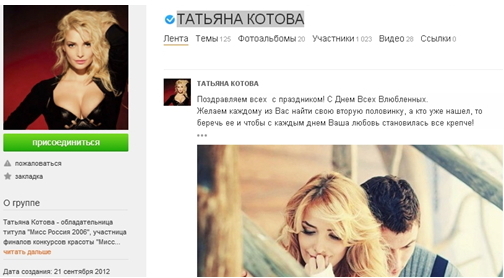 Но это не все новости: теперь Татьяна Котова есть в ОК – в социальной сети появилась ее официальная страница, на которую можно попасть, перейдя по следующей ссылке: www.ok.ru/kottova.