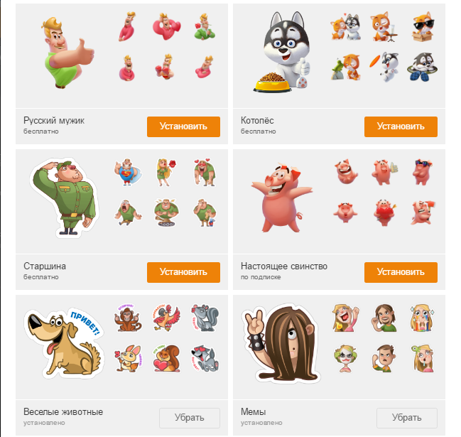 Как видим, у каждого пользователя социальной сети имеются свои любимые стикеры, которые они используют при общении с друзьями, коллегами, любимыми людьми и просто знакомыми.