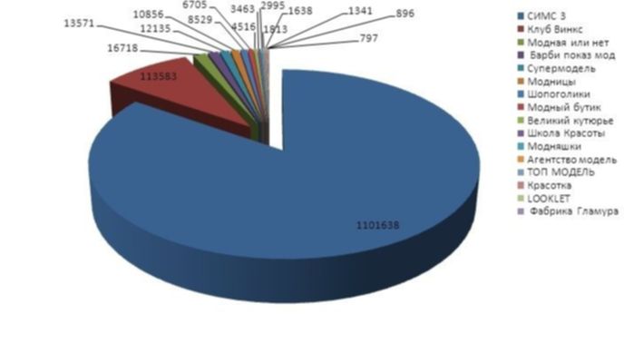 - среди пользователей поисковой системы Яндекс самой большой популярностью пользуются игры из категории "одевалки" под названием "СИМС 3" и "Клуб Винкс";