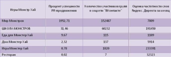 Пятый критерий: Аналитикам удалось определить лучший отдел PR-продвижения игр «Монстр Хай» на основе данных соцсети "Вконтакте" и Яндекса.