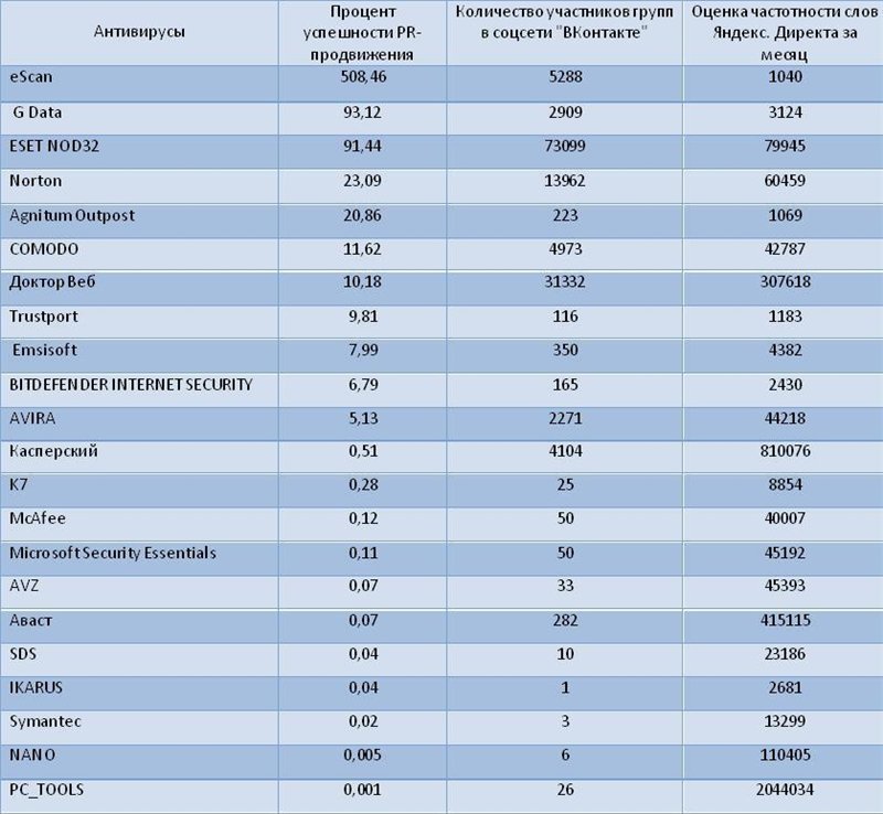 Последний раздел статьи посвящен определению самого эффективного пиара, который для повышения своей популярности использует тот или иной антивирус.