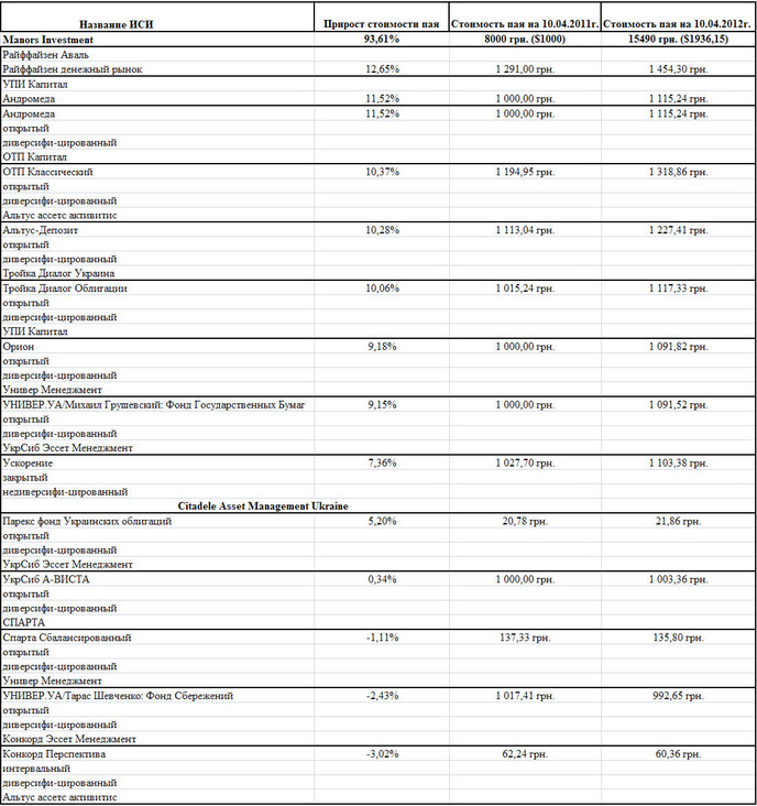 Рейтинг доходности 15 инвестиционных фондов Украины