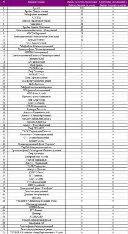 Данные сервиса Яндекс.Директ о популярности ПИФов.
