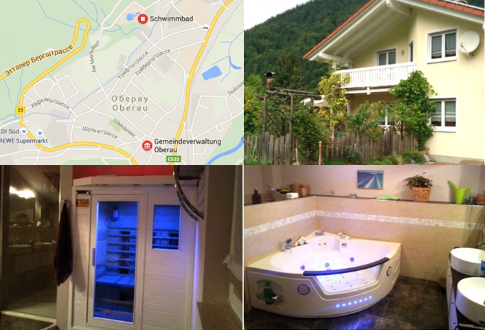 Дом двухэтажный, кирпичный, построен в 2006 году. Есть терраса, парковка, выход в сад. На участке – небольшой пруд. Рядом лес. Расположен на улице без сквозного движения в административном округе Верхняя Бавария в коммуне Оберау (8 км к северу от района Гармиш-Партенкирхен). Рядом есть вся необходимая инфраструктура: супермаркеты, аптеки, детский сад, школа. До Мюнхенской автострады – 7 минут езды.