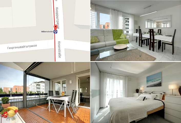 Рядом находятся банки, аптеки, школы, детский сад. К кольцевой дороге (MittlereRing) можно добраться на автомобиле всего за две минуты, до аэропорта – 25 минут. Ближайшая станция метро - в 400 метрах.