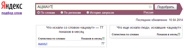 - оценка частотности слов для Яндекс.Директа за месяц, рассчитанная с помощью сервиса wordstat.yandex.ru;
