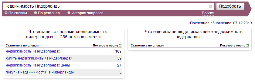 Что ищут россияне по фразам «Недвижимость Нидерланды» и «Недвижимость Голландия».