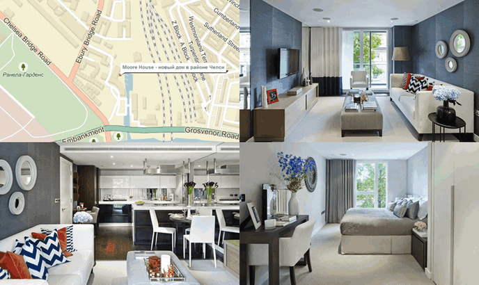 1. Moore House ― новый дом в районе Челси. Дом Moore House территориально расположен в новом жилом квартале Grosvenor Waterside (южная часть Челси). В ближайшее время район ждут перемены благодаря строительству жилого комплекса Chelsea Barracks. С его возведением специалисты компании «Savills» гарантируют рост цен на 30-40% в ближайшие 3-4 года в Grosvenor Waterside. Это означает, что Moore House уже сейчас обладает отличными перспективами для инвестиций как с целью перепродажи, так и сдачи квартир в аренду.