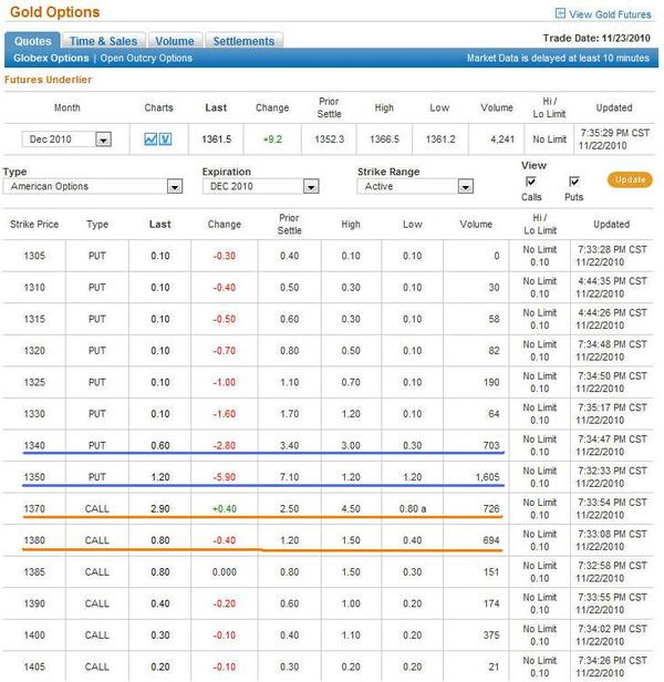 Анализ золота исходя из движения валютных пар при торговле внутри дня может дать несколько неправильный прогноз, в плане определения приоритетного направления движения. Это связано с тем, что валютные пары внутри дня отрабатывая ту или иную волну определенного временного уровня (боковое движение одной пары, пока другой его союзник отрабатывает какую-то волну - это может быть волны аС, bС и сС, а также усеченные волны по системе МастерФорекс-V), порой могут ввести нас в заблуждение в определении приоритетного направления золота. И если исходя из технического анализа трудно определить приоритетное направление движения золота при торговле внутри дня, то возникает вопрос: какой еще метод существует, который мог бы успешно приниматься для определения этого приоритета для успешной торговли? Вот тут к нам приходит в помощь такое понятие как "опционы" и "опционная торговля".