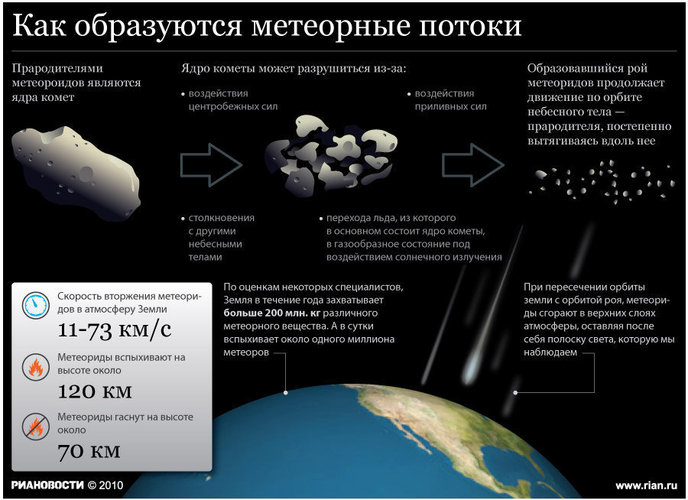 Метеоритный поток, или как его еще называют звездопад, представляет собой одно из самых захватывающих и красочных явлений космоса, которое можно наблюдать даже невооруженным взглядом. Звездный дождь начинается, когда совокупный поток небольших метеоритов, в большинстве случае частички космической пыли, начинают входить в плотные слои атмосферы нашей планеты. Чаще всего звездным дождем называют поток метеоритов большой интенсивности. В частности те которые имеют зенитное число до тысячи метеоритов в час, - передают эксперты раздела "Новости науки" издания для инвесторов "Биржевой лидер".