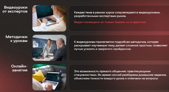 Обучение позволяет быстро выделить главное: какая информация действительно важна, как оценивать компании, какие риски учитывать и какие ошибки чаще всего совершают новички. Вместо того чтобы тратить часы на просмотр разных источников, инвестор получает компактную, проверенную логику действий, которой можно пользоваться сразу. Поэтому в поисках курсов по трейдингу стоит обращать внимание на полноценную теоретическую базу, совмещенную с практикой.