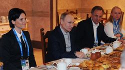 Президент России Владимир Путин принял делегацию олимпийской команды Украины в Красной Поляне. За чаем с пирогами украинцы рассказали главе российского государства, что болеют в первую очередь, конечно, за своих, но и успехам россиян рады, передает телеканал НТВ.
