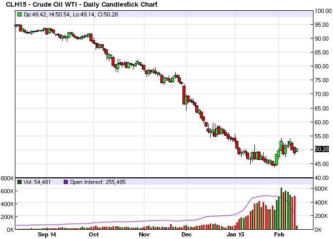 Сегодня, 12 февраля 2015 года нефть продолжает нисходящий мощный тренд и торгуется на отметке 50,28 долларов США за баррель, - отмечают аналитики брокерской компании Форекс Тренд / Forex Trend: