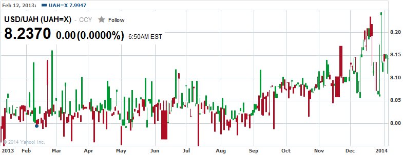 "Курс гривны вновь обновил исторический максимум и достиг отметки - 8,3464", - рассказали эксперты брокерской компании Tusar FX (входит в список рекомендованых брокеров Форекс Академии Masterforex-V). На данный момент курс гривны торгуется на уровне 8,2370.