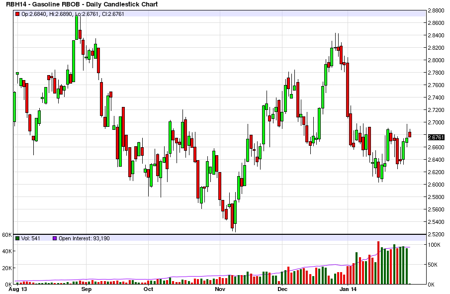 Сегодня, 31 января 2014 г., цены на февральский фьючерс бензина Gasoline RBOB February 2014 (RBG14) торгуются на уровне 2,6761 доллара США, как констатируют аналитики брокера с украинскими корнями Forex Trend (Форекс Тренд является лидером рейтинга брокеров Форекс, составленного трейдерами Академии Masterforex-V):