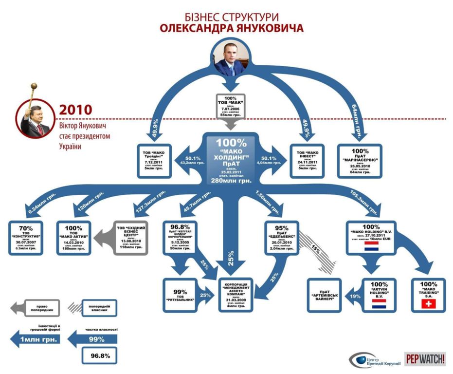 Теперь же Александр Янукович стал одним из самых богатых украинских бизнесменов, а также вторым богатым человеком в Донецке (первое место занял Ринат Ахметов). По состоянию на ноябрь прошлого года стоимость активов старшего сына бывшего президента составляет 510 миллионов долларов по оценкам Forbes.