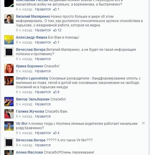 Глава Харьковской области заверил, что на этом останавливаться они не собираются и продолжат пресекать все попытки распространения сепаратизма в регионе. Мир и порядок на Харьковщине будет и дальше поддерживаться всеми законными методами, написал И. Балута.