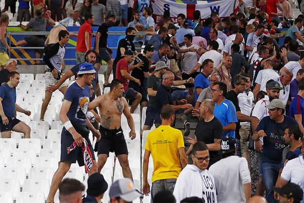 Правда, у англичан немного иная точка зрения на то, как развивались события. Лидер английских фанатов Кевин Майлз в интервью газете Telegraph рассказал, что драки в Марселе начались с вялых стычек болельщиков сборных Франции и Англии. И когда перепалки гордых сыновей норманнов и галлов уже шли на убыль, вдруг появилась толпа российских фанатов, которые накинулись на англичан. «Это выглядело так, будто они несколько месяцев специально тренировались», – подчеркнул К. Майлз. Россияне же были и инициаторами драки на стадионе «Велодром» – именно они перелезли через заграждения между секторами на трибунах и напали на английских болельщиков.