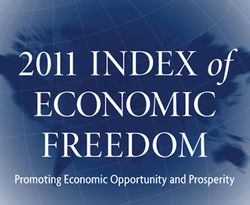 По шкале индекса экономической свободы России принадлежит 50,5 баллов в 2011 году. Деятельность предпринимателей «в основном несвободна» по мнению Heritage Foundation и Wall Street Journal. Снижение России в рейтинге экономической свободы связано не с ухудшением ситуации в стране, а с тем, что более высокие позиции заняли некоторые страны Азии и Африки. Хотя факторы, препятствующие развитию экономики, в России все-таки присутствуют.