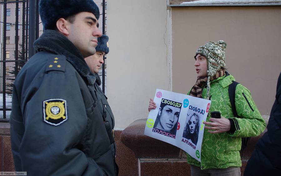 Новости России. Более 60-ти одиночных пикетов состоялось в Москве в защиту панк-группы "Пусси Райот". Двух девушек этой группы арестовали за хулиганство в Храме Христа Спасителя.
