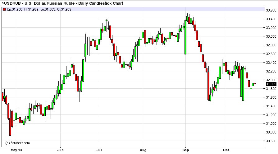 Торговая сессия на российском валютном рынке ММВБ началась 22 октября 2013 г. с роста курса российского рубля по отношению к евро и бивалютной корзине (0,55 доллара США и 0,45 евро) и его снижением к доллару.