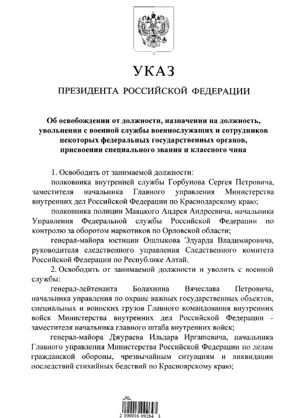 Согласно текста указа освобождены от должности и уволены с военной службы: