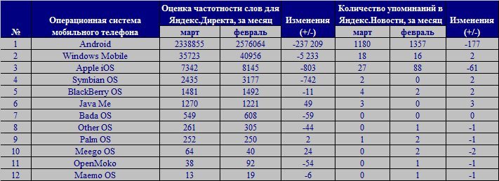 - на третьей строчке - Windows Mobile (18 упоминаний).