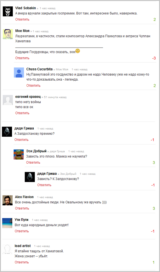 Реакция интернет-сообщества на известие о награждении госпремиями.