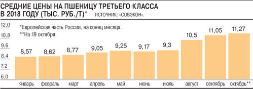 Исполнительный директор «Дихлеба» Евгений Демидов основной причиной будущего подорожания называет рост цен на зерно. По информации «Совэкона», на прошлой неделе в Сибири средние цены пшеницы 3 класса выросли на 300 рублей, до 9,8 тысячи рублей за тонну. В сентябре прошлого года котировки были на уровне 7,25 тысячи рублей за тонну. На европейской части российской территории зерно этого класса подорожало на 225 рублей и сейчас стоит 11,27 тысячи рублей за тонну (в прошлом сентябре – 8,45 тысячи рублей за тонну).