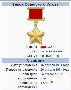 - 29 июня 1945 года – Герой Советского Союза с присвоением медали "Золотая Звезда". Посмертно;